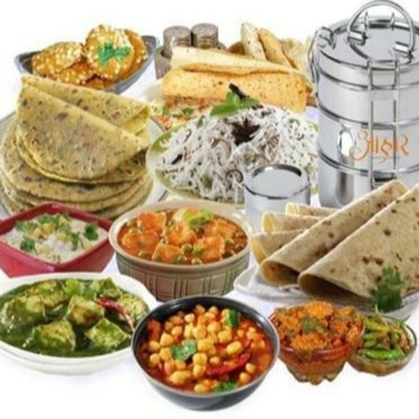 Rice & dal ,2 chapati,moong usal,chicken malavani masala,papad,salad ,achar .